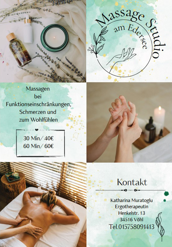 Durchgeführt werden diese vom „Massage Studio am Edersee“ von Katharina Muratoglu, staatlich anerkannte Ergotherapeutin.